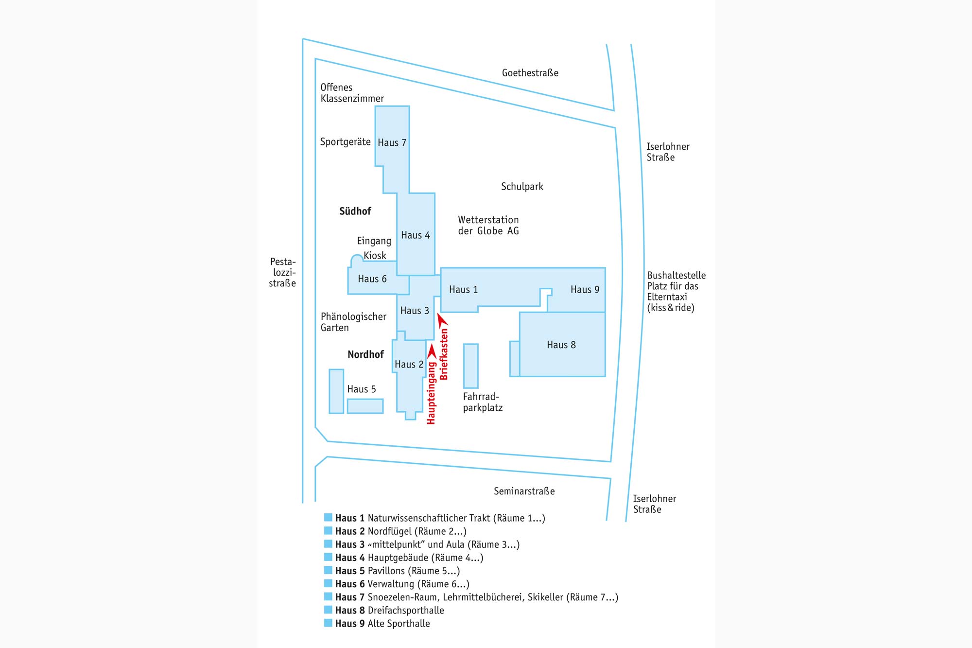 Entwicklung einer Schulbroschüre und eines Leitsystems durch die Schule mit Schildern und Tafeln