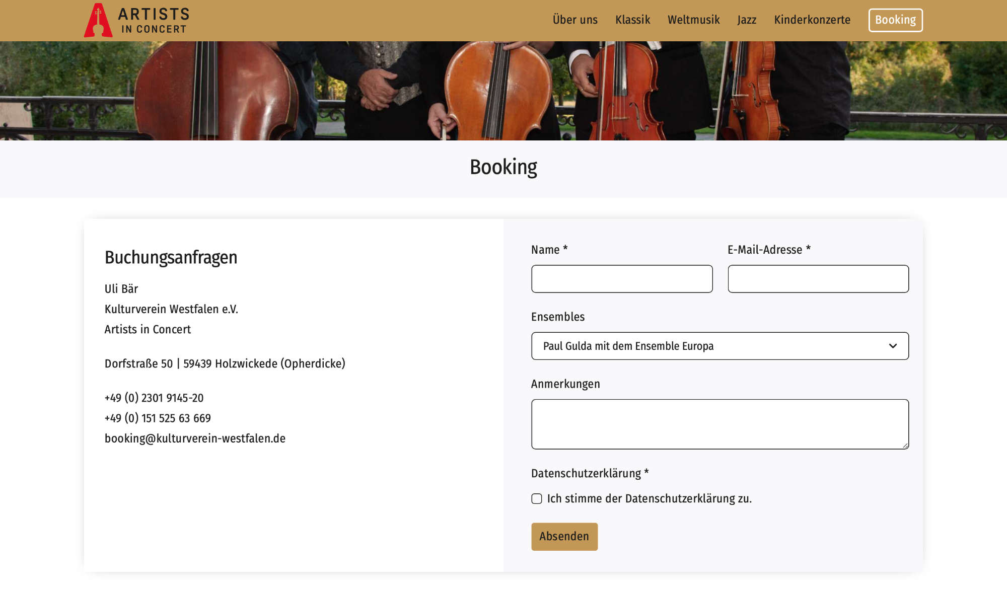 Arbeiten für Artists in Concert Erstellung einer Website Website www.artists-in-concert.com