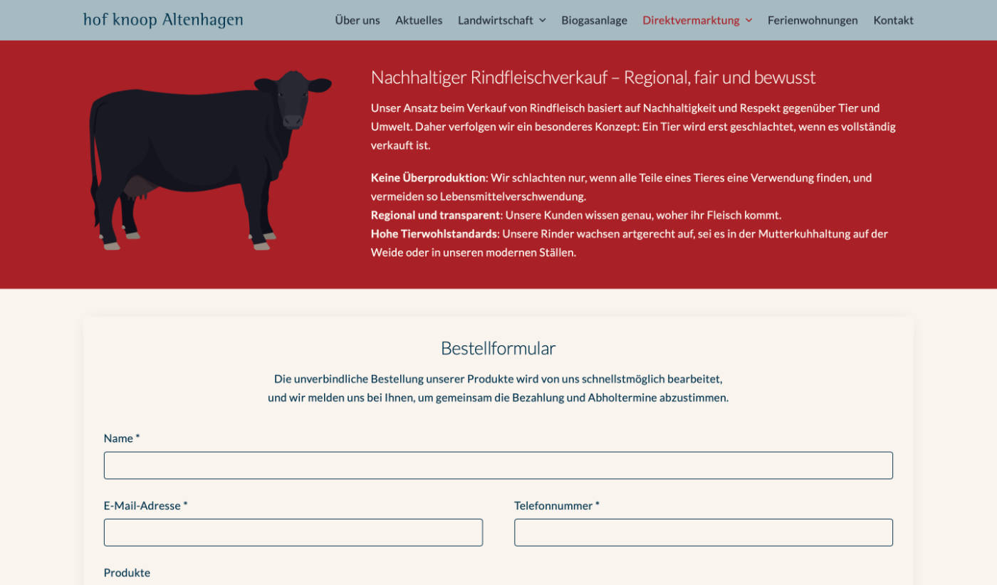 Arbeiten für den Hof Knoop Altenhagen Erstellung einer Website