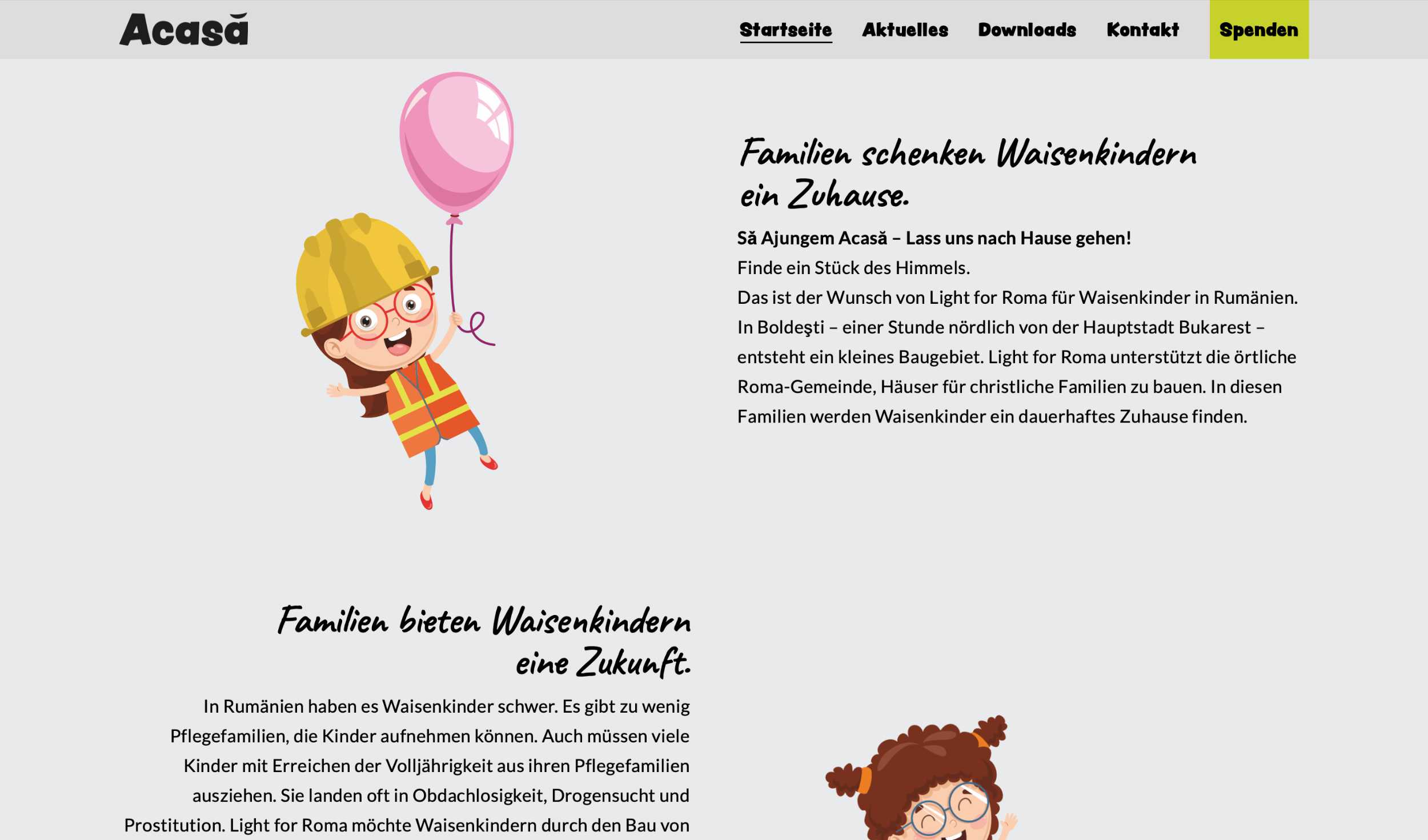 Arbeiten für Acasă – Kinder helfen Kinder – FEG Erstellung einer Website Website www.kinder-helfen-kindern.feg.de