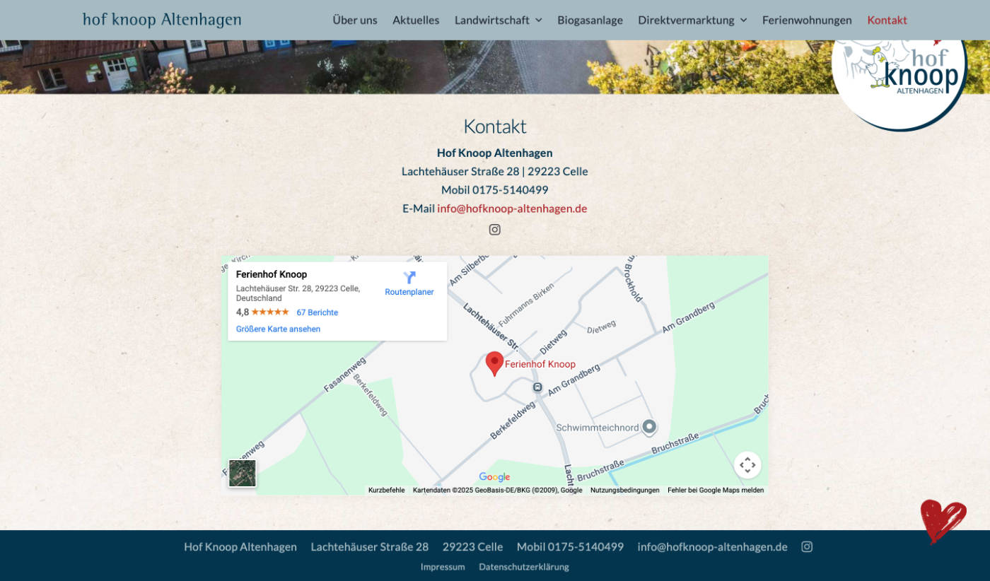 Website www.hofknoop-altenhagen.de