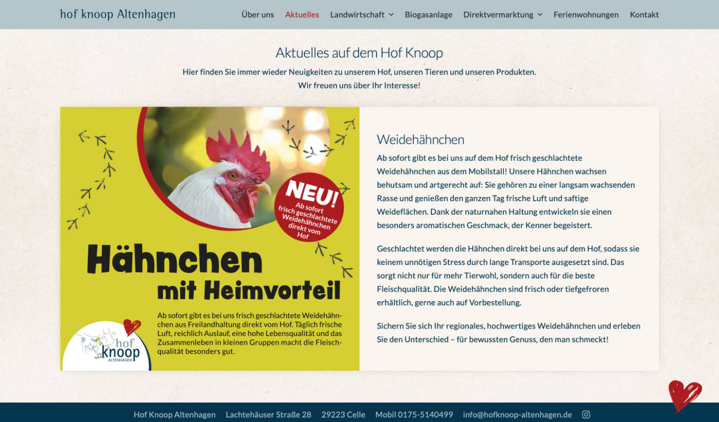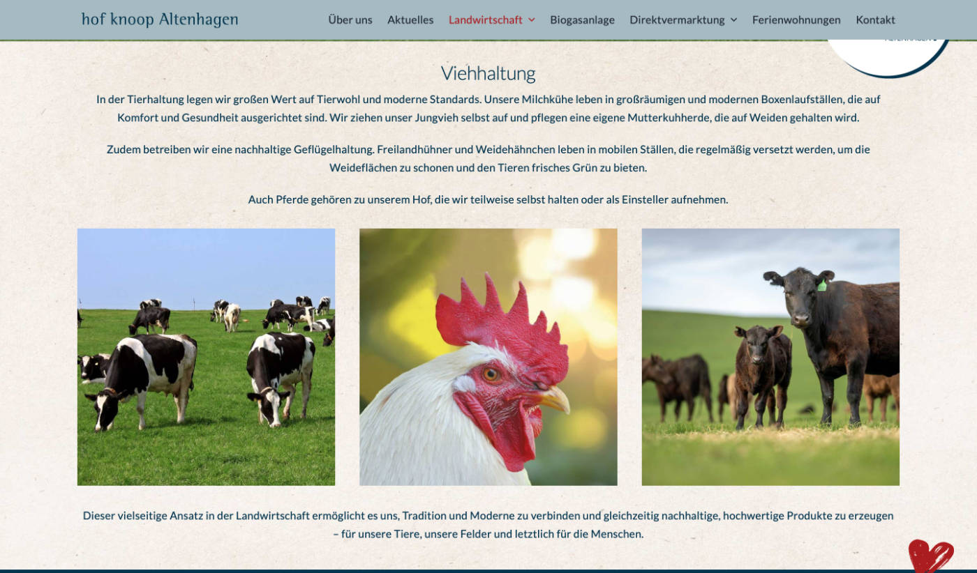Arbeiten für den Hof Knoop Altenhagen Erstellung einer Website