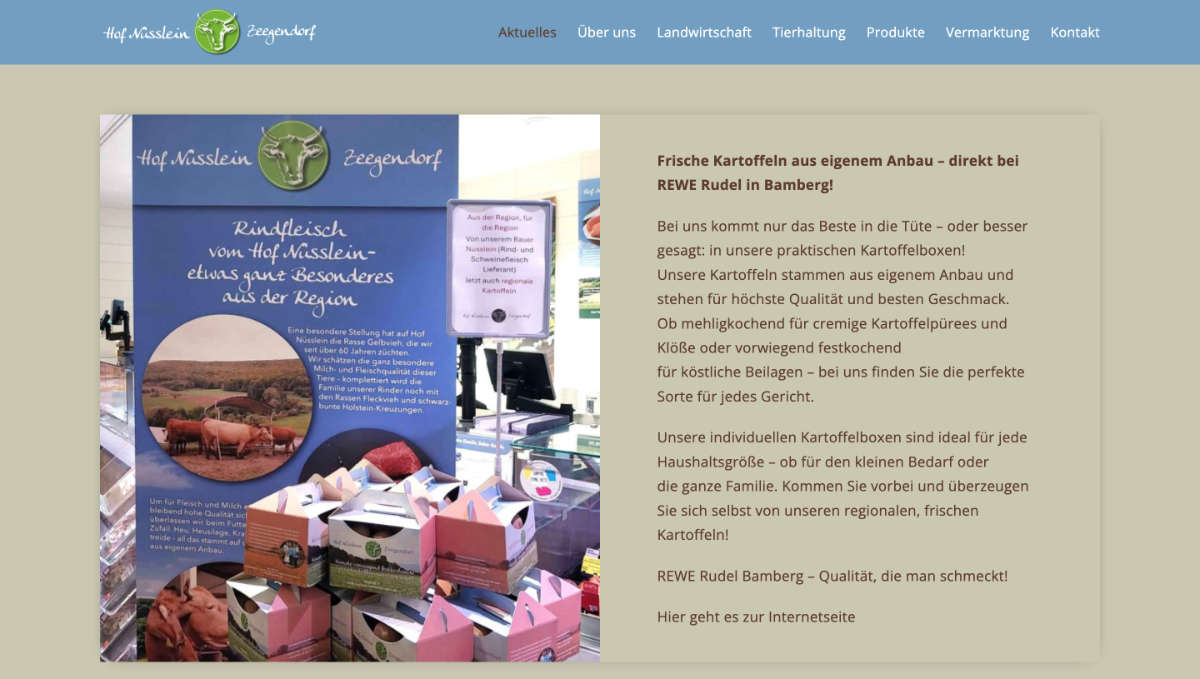Arbeiten für Hof Nüsslein Erstellung einer Website Website www.hof-nuesslein.de
