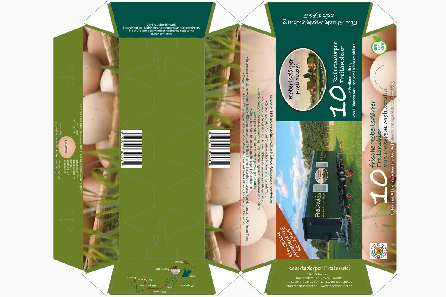 die Beschriftung von eggboxes, Infoflyern zum Einlegen in die Schachteln, Erstellen einer KFZ-Beschriftung